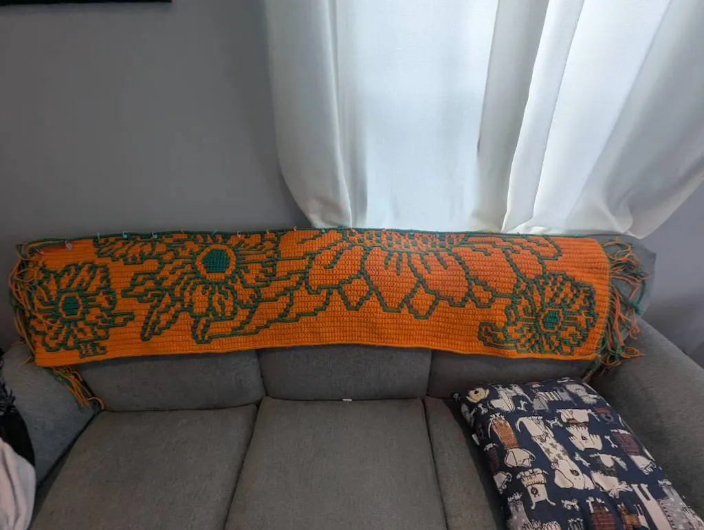 Falling For Flowers is 200 stitches by 251 rows and can be worked in the yarn and hook size of your choosing.